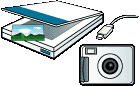 素材をパソコンに取り込むにはスキャナーやデジカメ接続キッドなどの入力装置が必要になります。